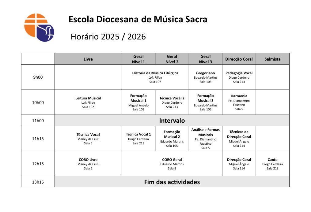 Aulas aos sábados de manhã das 9h00 às 13h15:
